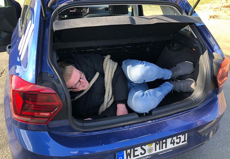 Azubi im Kofferraum