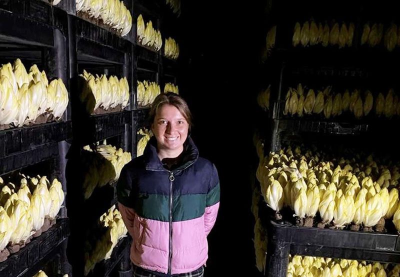 Vor Ort konnte ich mir den gesamten Prozess, welchen der Chicoree durchläuft, anschauen. Spannend an diesem Ablauf ist, dass der Chicoree nicht klassisch auf dem Feld angebaut wird, sondern sich in dunklen Kältekammern entwickelt.