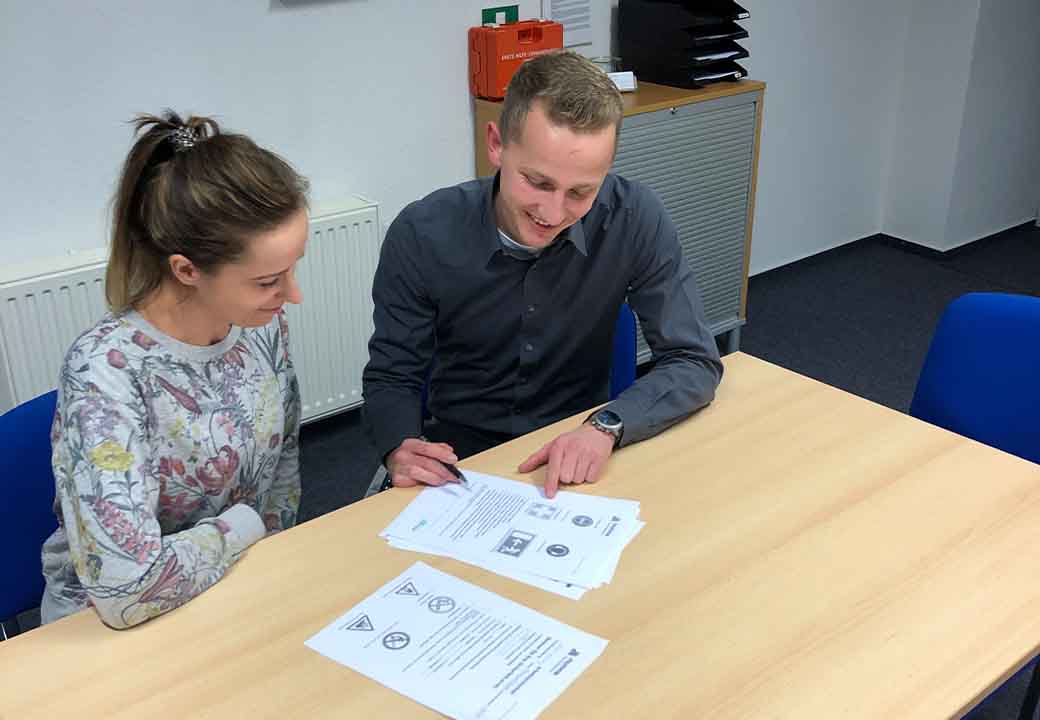 Um gezielt auf mögliche Gefahren am Arbeitsplatz hinzuweisen, schulen wir unsere Mitarbeiter regelmäßig. Hierbei achten wir natürlich immer auf arbeitsplatzspezifische Schulungen und erneuern diese gegebenenfalls.
